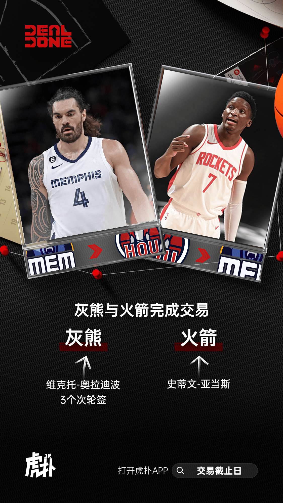 虎扑02月02日讯 根据ESPN记者的消息,灰熊与火箭完成一笔交易,完成送出史蒂文-亚当斯换来奥拉迪波+3个次轮签。交易